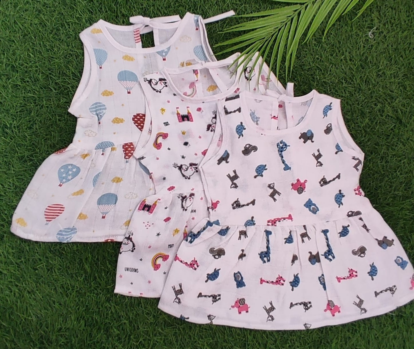 Premium Muslin Back Knot Frock Combo pack of 3 (0-6 Months)