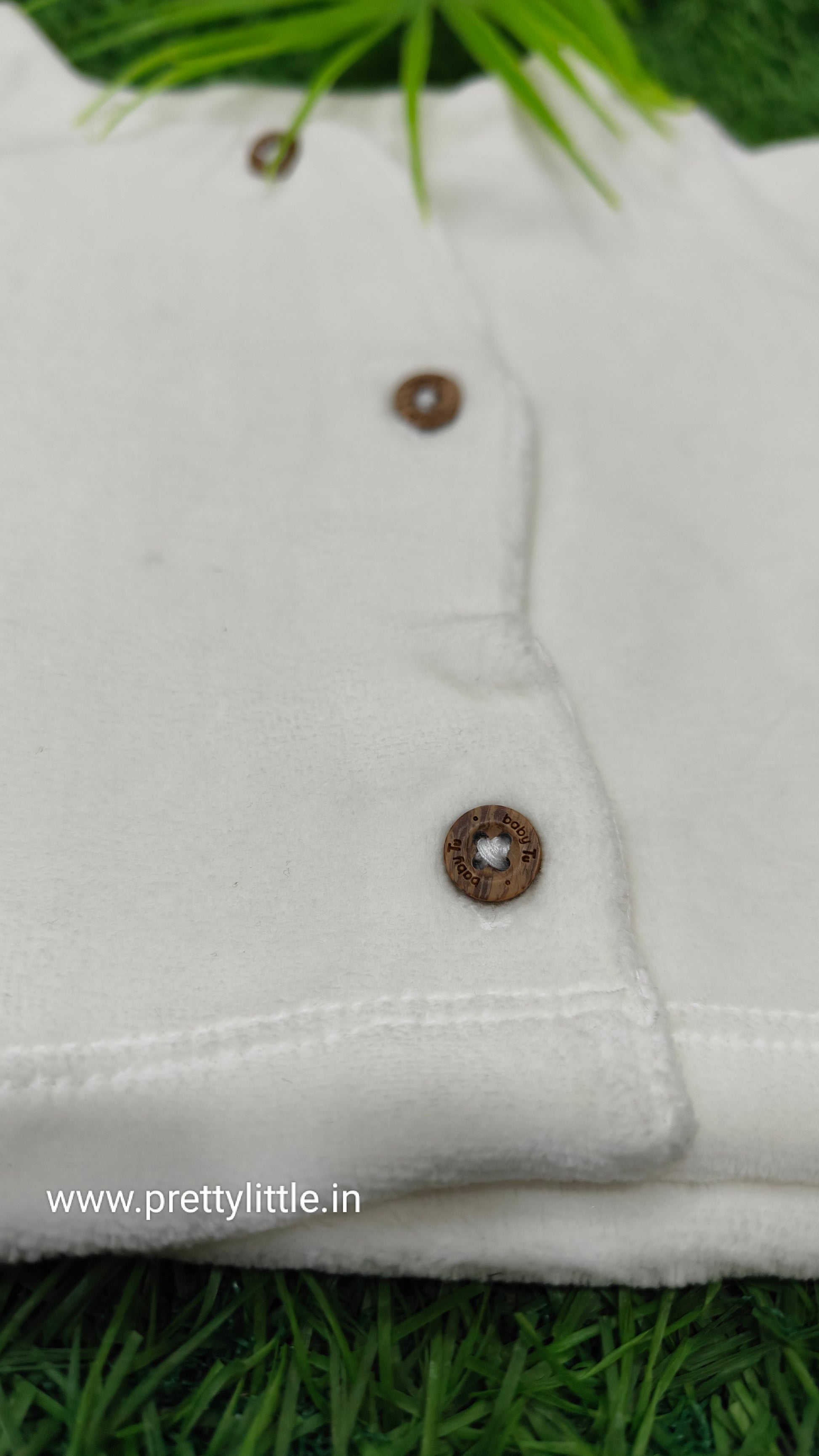 premium soft baby shirt is crafted with the finest fabric to ensure ultimate comfort for your little one. Designed for warmth and breathability, the soft-touch material is gentle on sensitive skin. The wrap-style front with wooden buttons adds a stylish and practical touch, making it easy to dress your baby. Perfect for everyday wear or special occasions, this baby essential is a must-have for new parents.