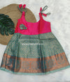 This elegant pattu frock is designed for babies aged 6 to 12 months, making it perfect for special occasions and traditional events. Crafted from premium bridal silk, the frock features a stunning combination of vibrant blue and gold, with intricate detailing that adds to its charm.