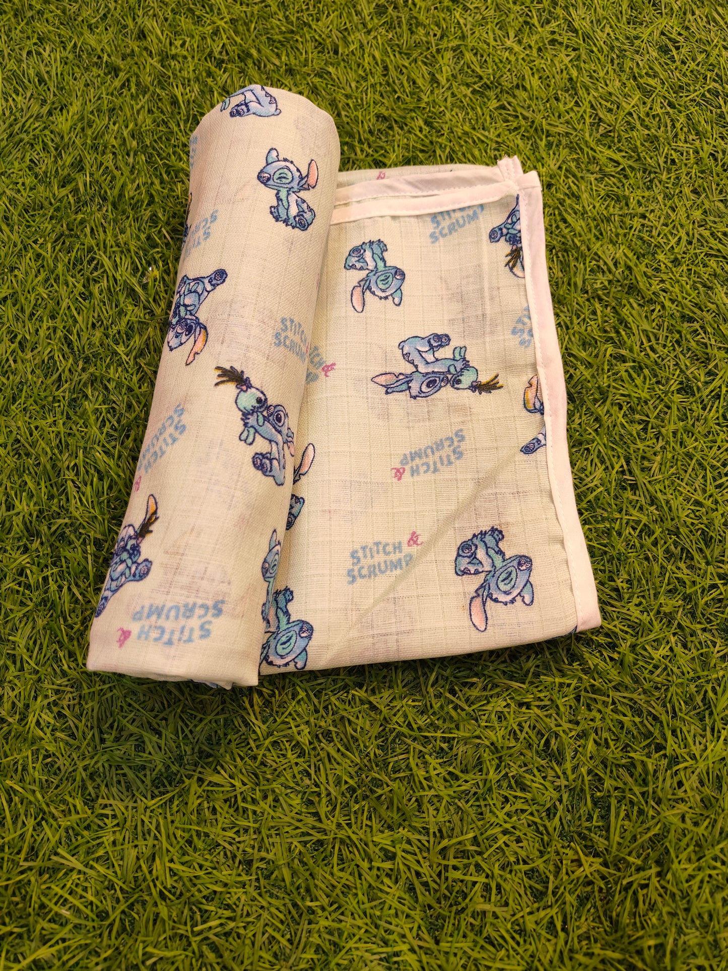 Double-layer muslin cotton, known for its breathability and softness, making it ideal for infant swaddling.