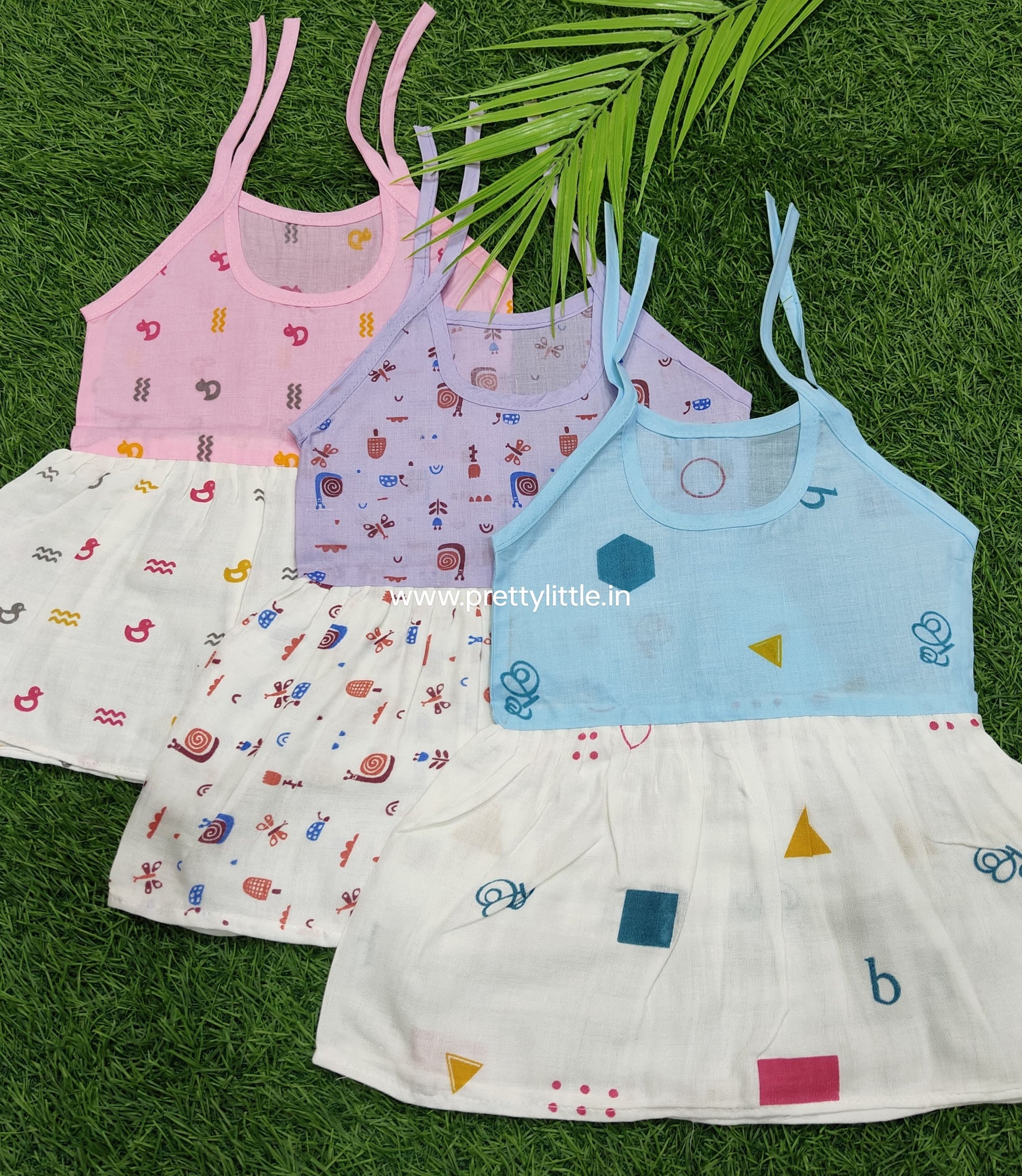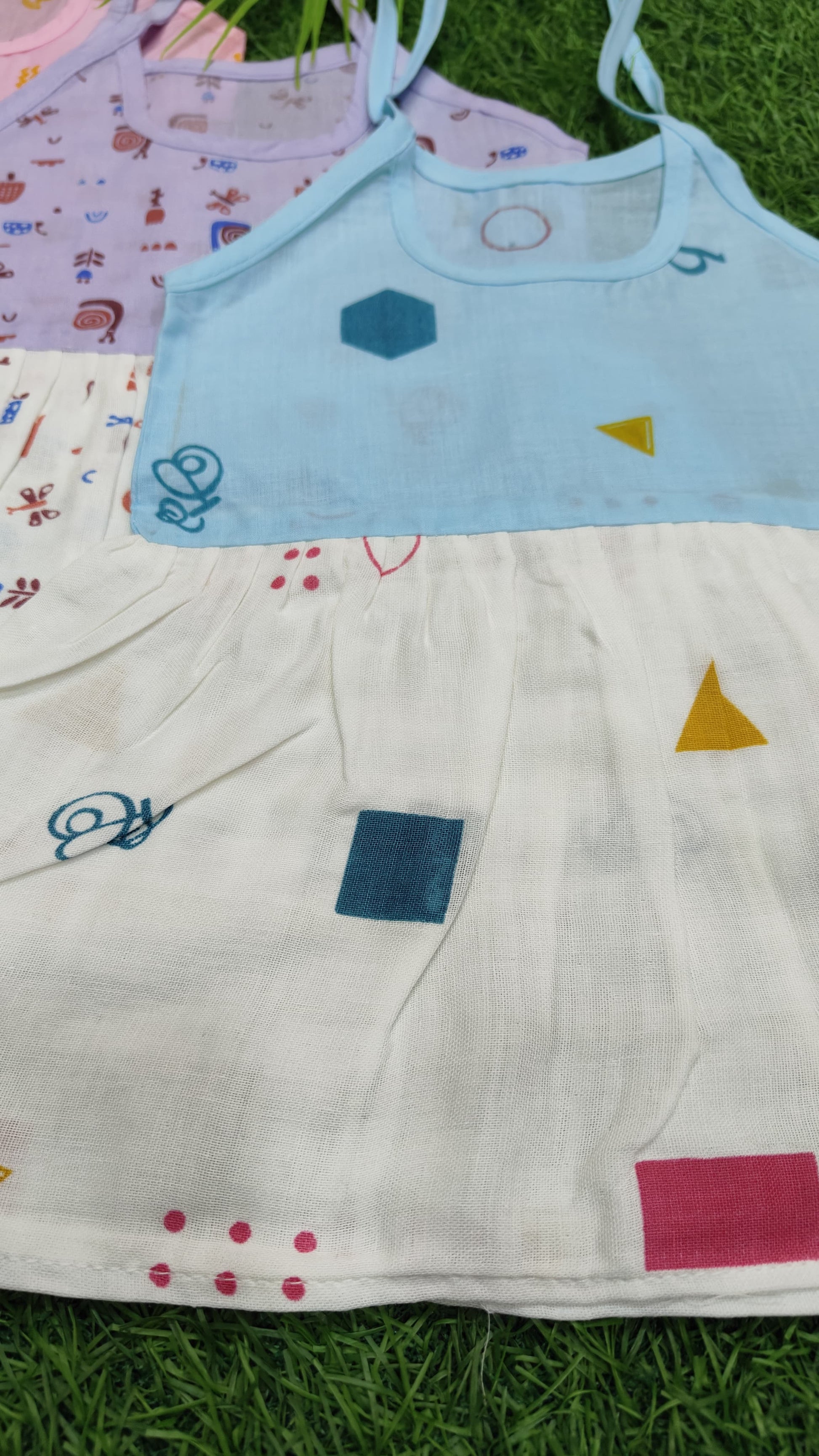 Color cotton with muslin knot frock combo pack (best 3 dispatched)(0-3m)