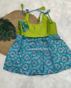 This elegant pattu frock is designed for babies aged 6 to 12 months, making it perfect for special occasions and traditional events. Crafted from premium bridal silk, the frock features a stunning combination of vibrant blue and gold, with intricate detailing that adds to its charm.