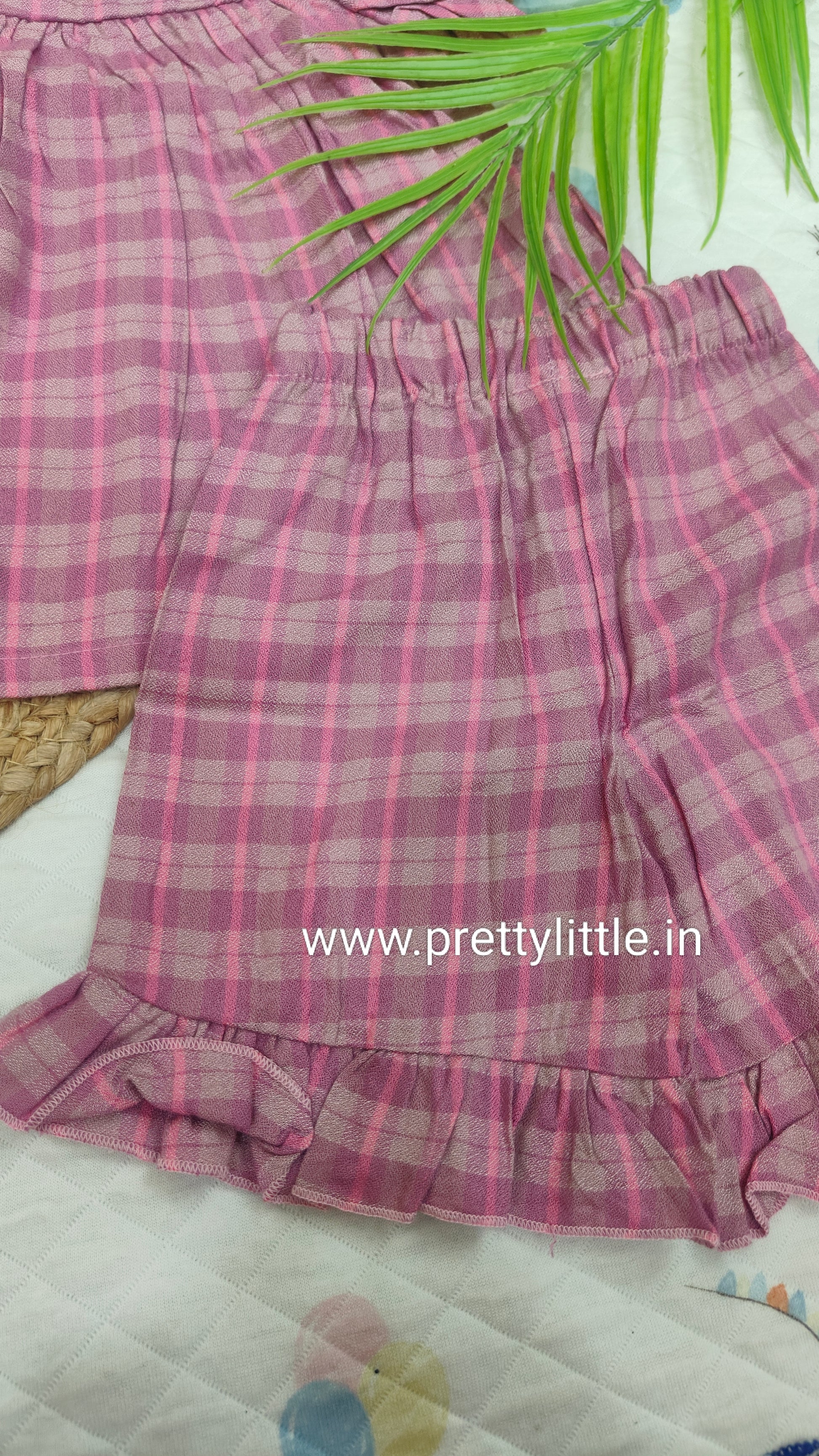 Designed with soft checks, flutter sleeves, and a comfortable elastic waist, this set is perfect for daily wear, outings, or playtime